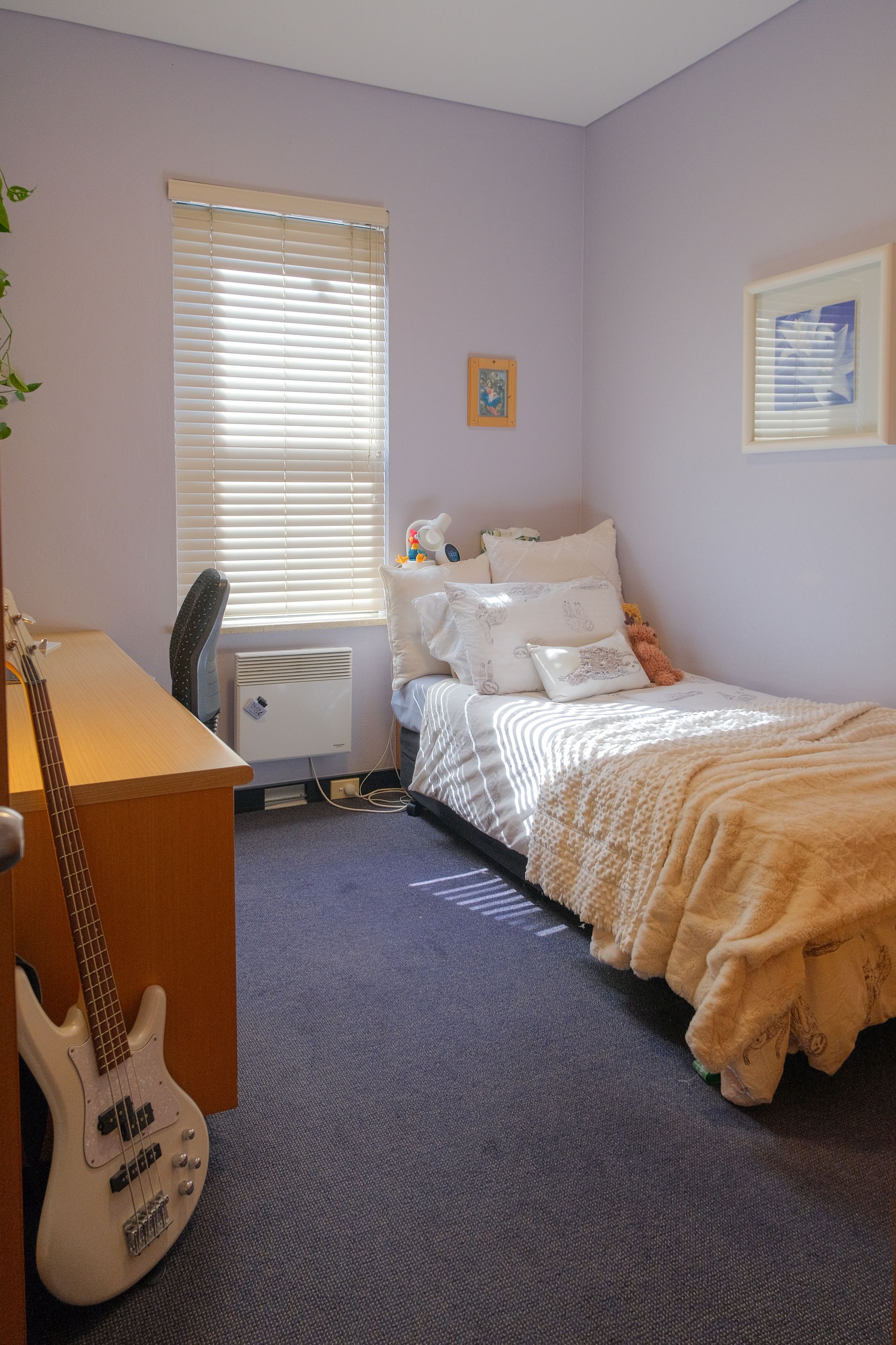 - Built-in desk, study chair, pin board, desk and bed lamp